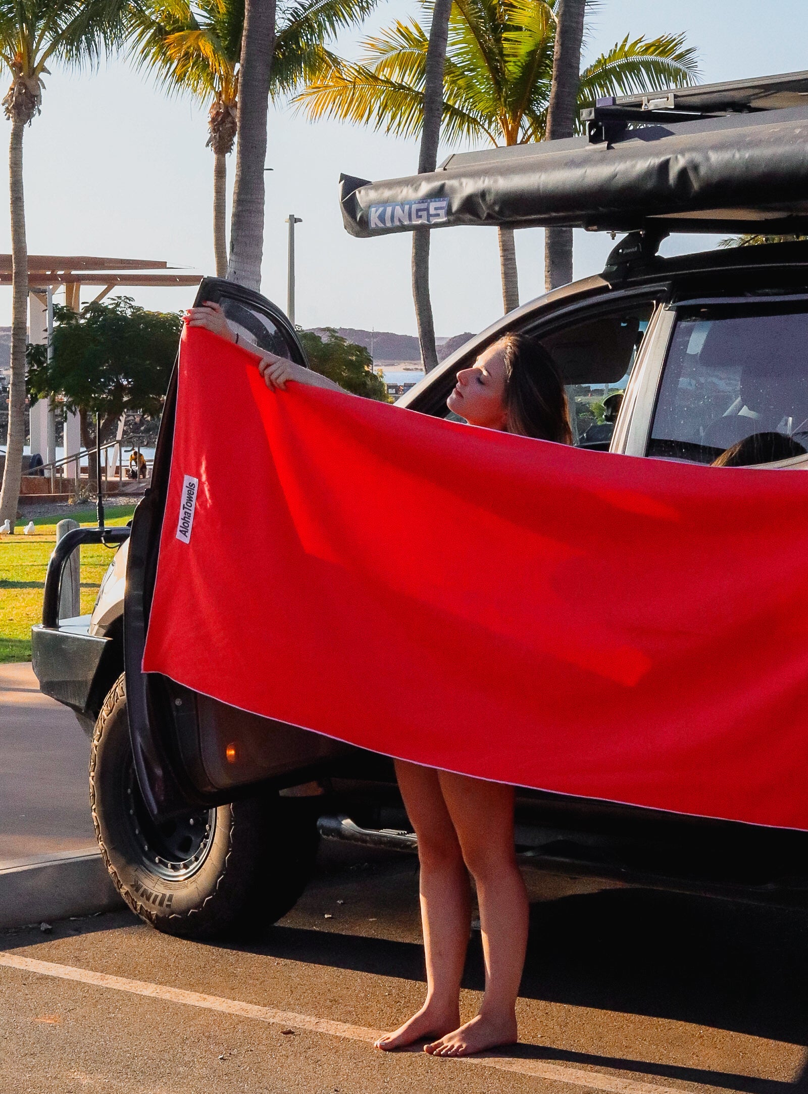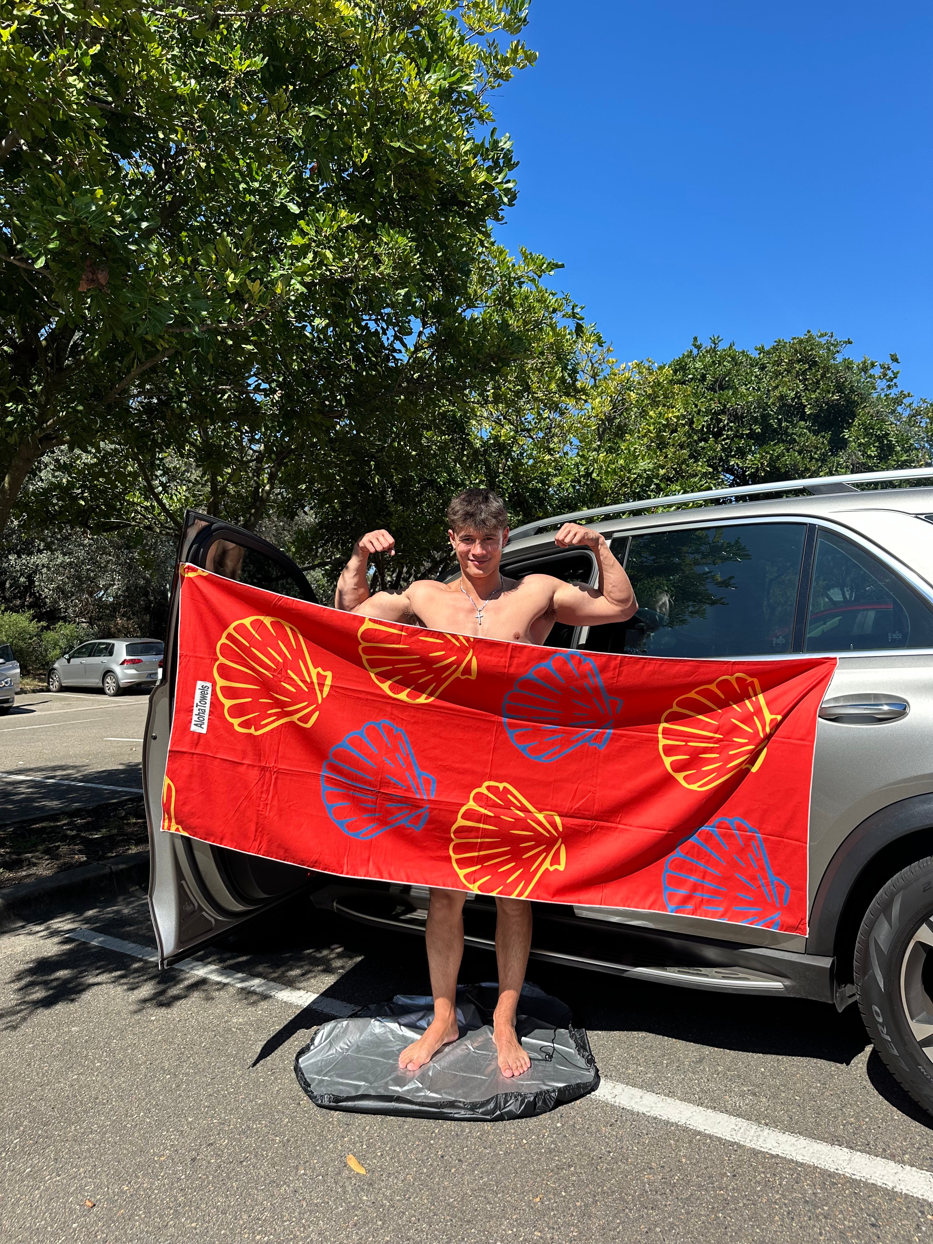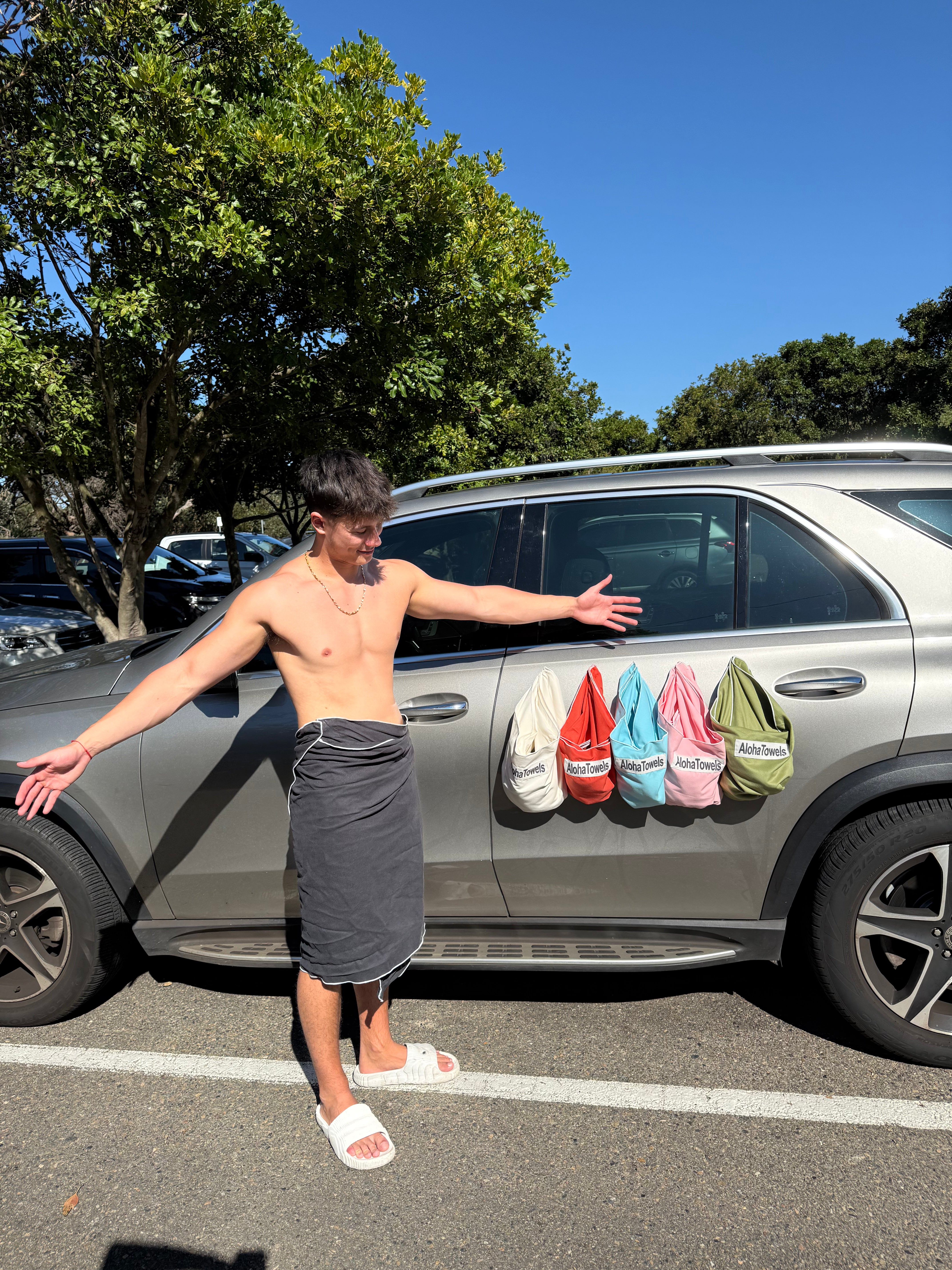 AlohaTowels are designed with high-strength, rust-resistant magnets that are seamlessly embedded into the fabric. These powerful magnets allow you to securely attach your towel to your car, beach chairs, metal railings, and other magnetic surfaces—so you never have to deal with slipping, falling, or wind-blown towels again.
