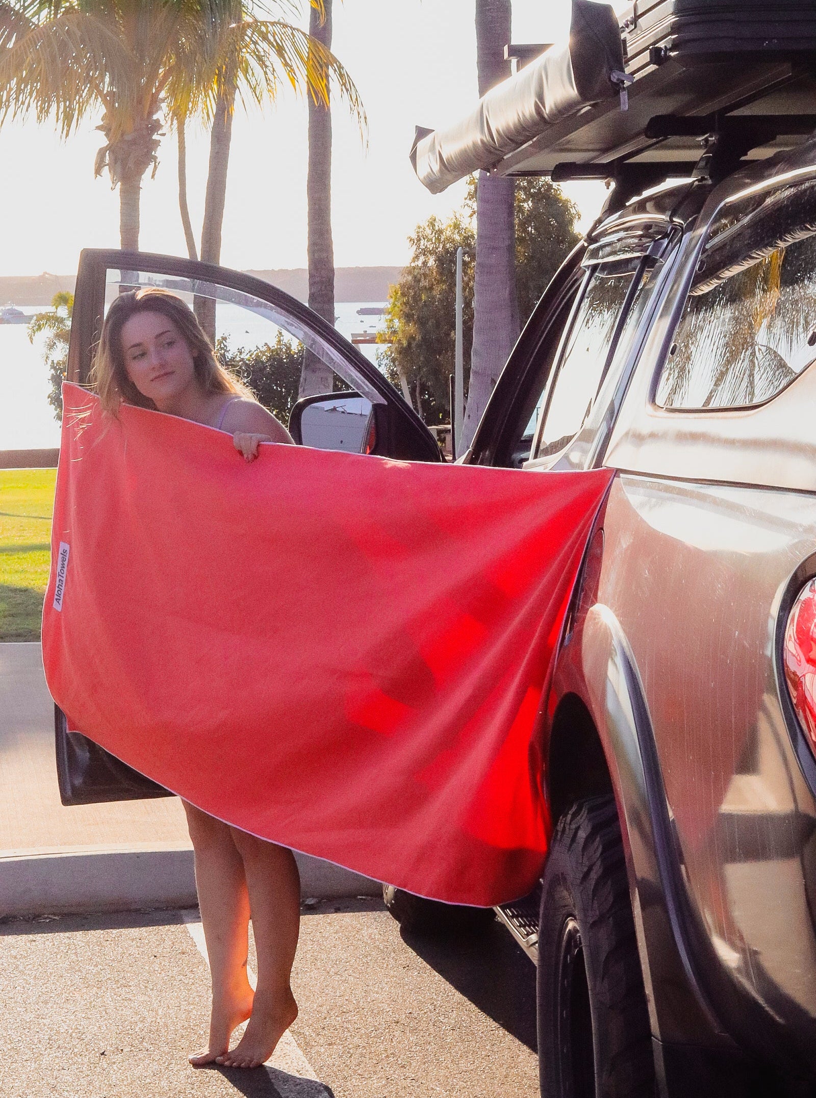Never awkwardly change in public again (stick your Aloha Towel to your car and create an instant changing room!)