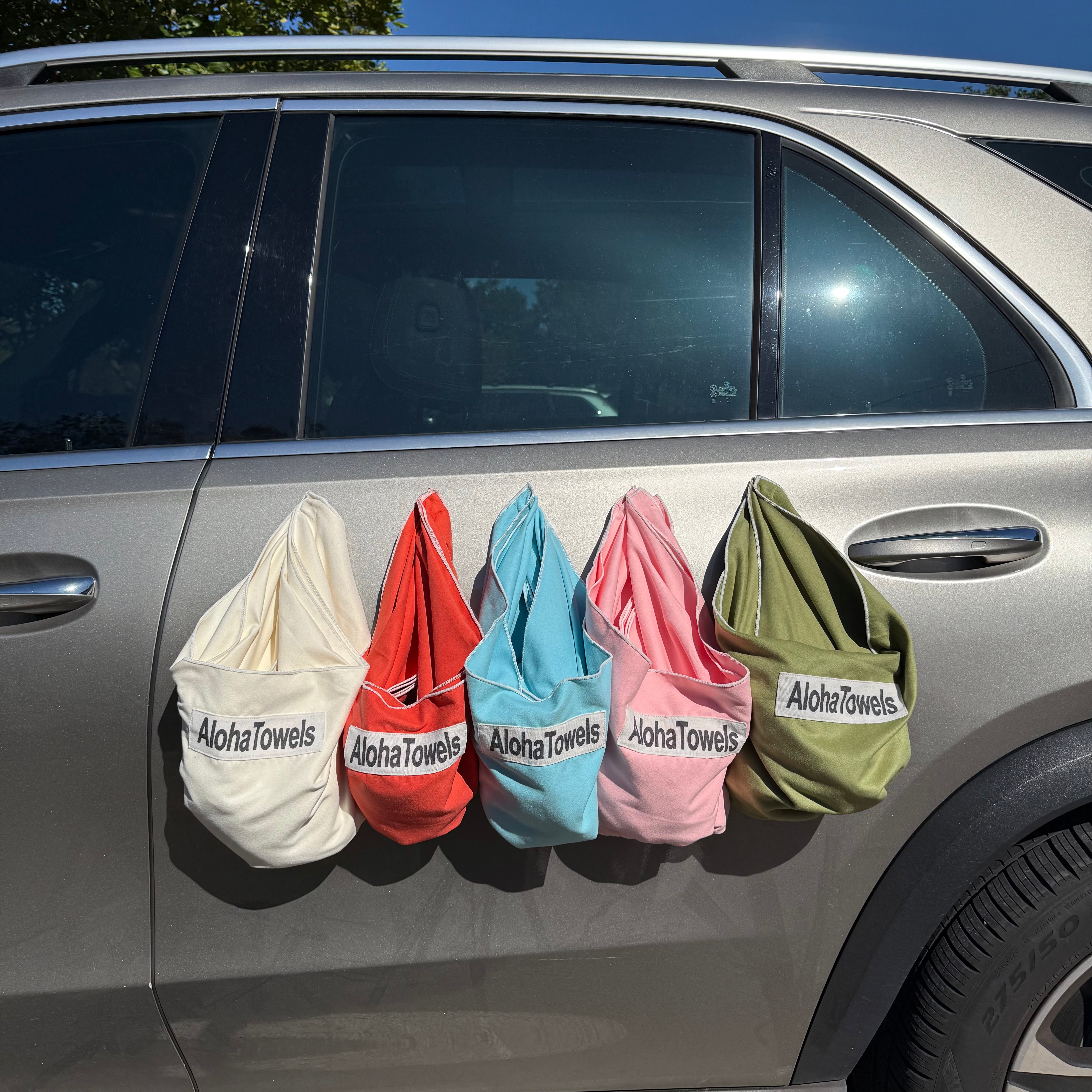 AlohaTowels are designed with high-strength, rust-resistant magnets that are seamlessly embedded into the fabric. These powerful magnets allow you to securely attach your towel to your car, beach chairs, metal railings, and other magnetic surfaces—so you never have to deal with slipping, falling, or wind-blown towels again.